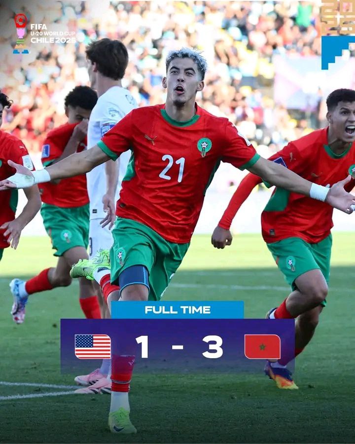 በቺሊ አስተናጋጅነት በመካሄድ ላይ በሚገኘው ከ20 ዓመት በታች የዓለም ዋንጫ አፍሪካዊቷ ሀገር ሞሮኮ አሜሪካን በማሸነፍ ወደ ግማሽ ፍፃሜው ደርሳለች።