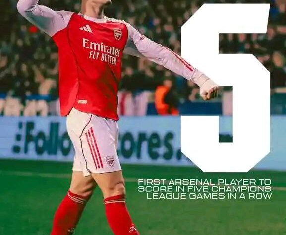 ጋብርኤል ማርቲኔሊ በ5 ተከታታይ የሻምፒዮንስ ሊግ ጨዋታዎች ጎል ያስቆጠረ የመጀመሪያው የአርሰናል ተጫዋች ሆነ ብራዚላዊው...